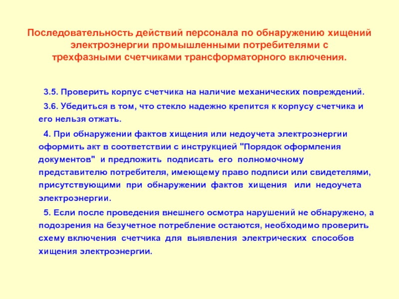 - Последовательность действий персонала по обнаружению хищений электроэнергии промышленными потребителями.