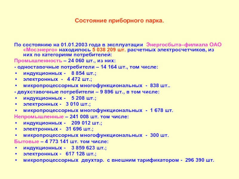 ОАО «Мосэнерго» находилось 5 038 209 шт. расчетных электросчетчиков, из них по категориям потребителей: