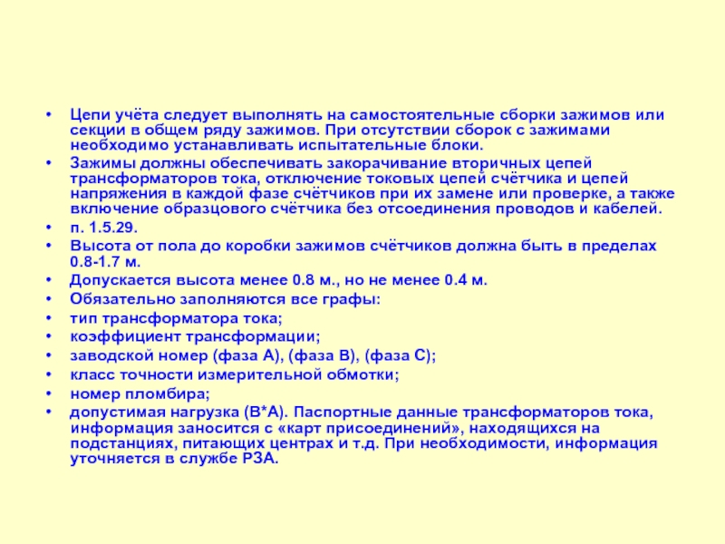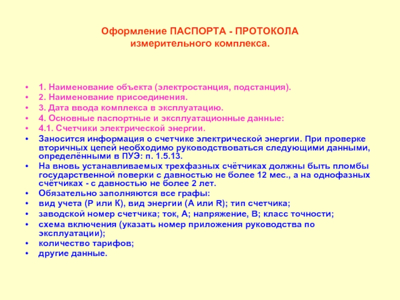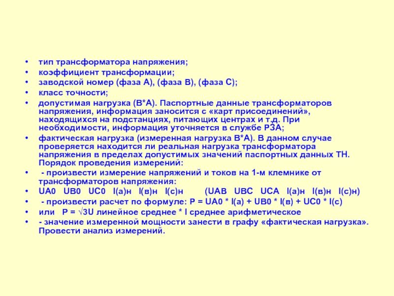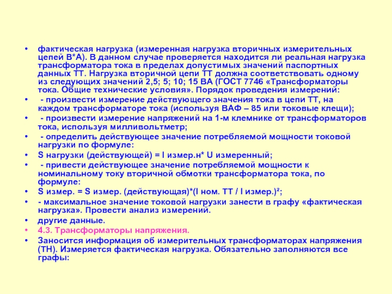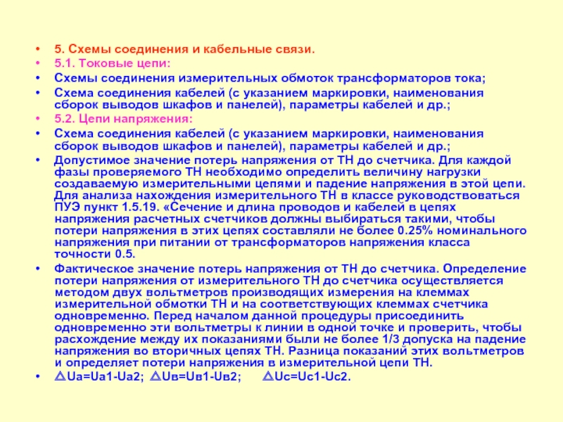 отклонения тока и напряжения в измерительных цепях от заданных пределов (обязательно при новом строительстве энергообъектов);