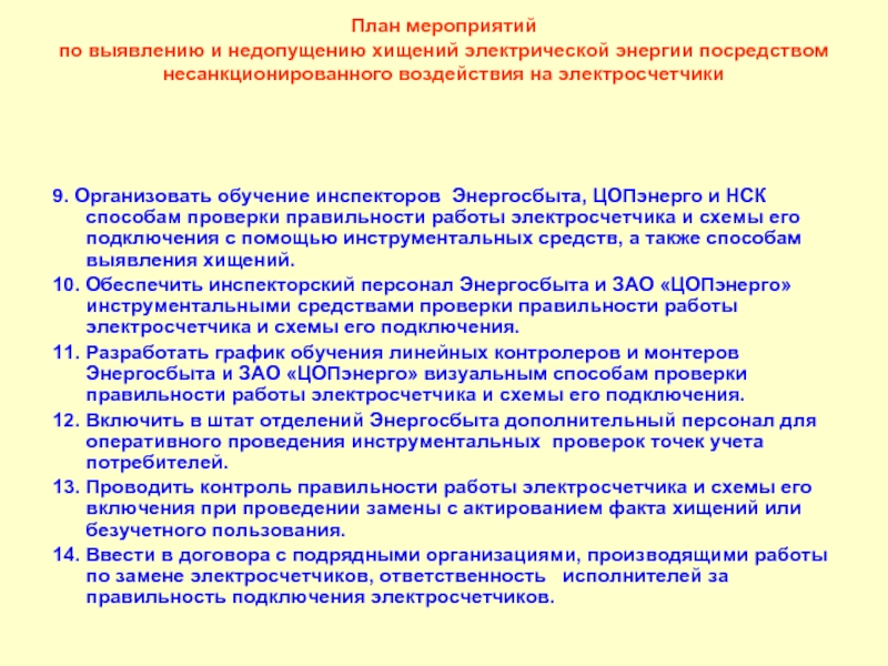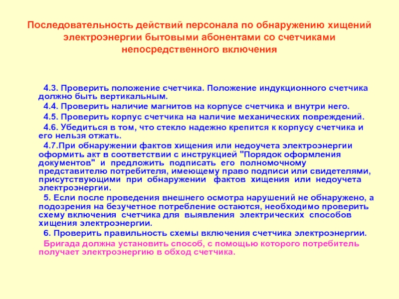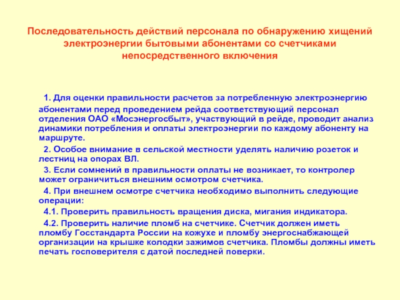 - Последовательность действий персонала по обнаружению хищений электроэнергии бытовыми абонентами.