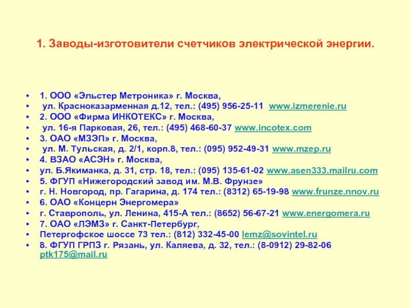 3. Порядок работы с заводами-изготовителями приборов учета.