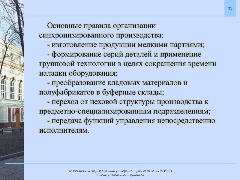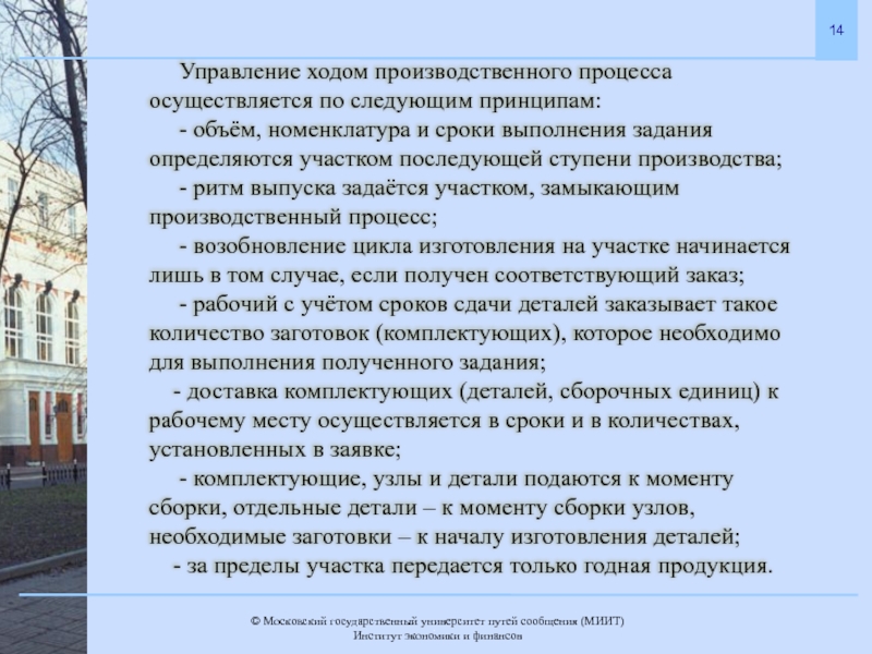 Слайд 14 Управление ходом производственного процесса осуществляется по следующим принципам: