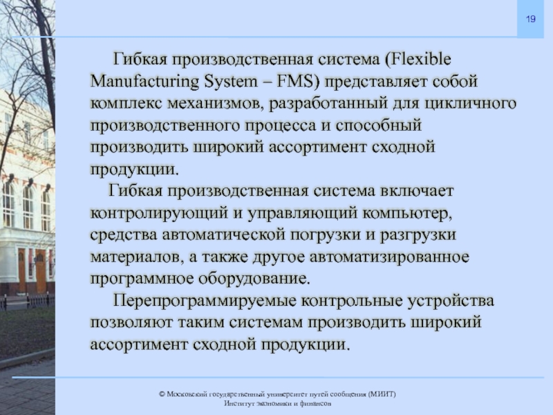 Слайд 19 Гибкая производственная система (Flexible Manufacturing System – FMS)