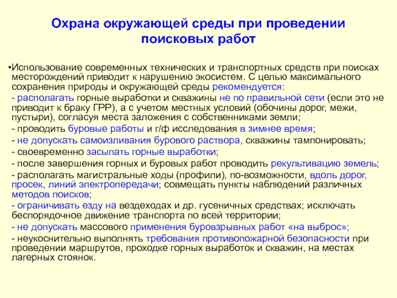 Слайд 106Охрана окружающей среды при проведении поисковых работ