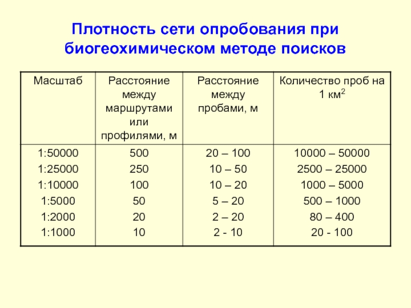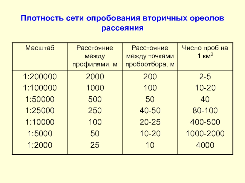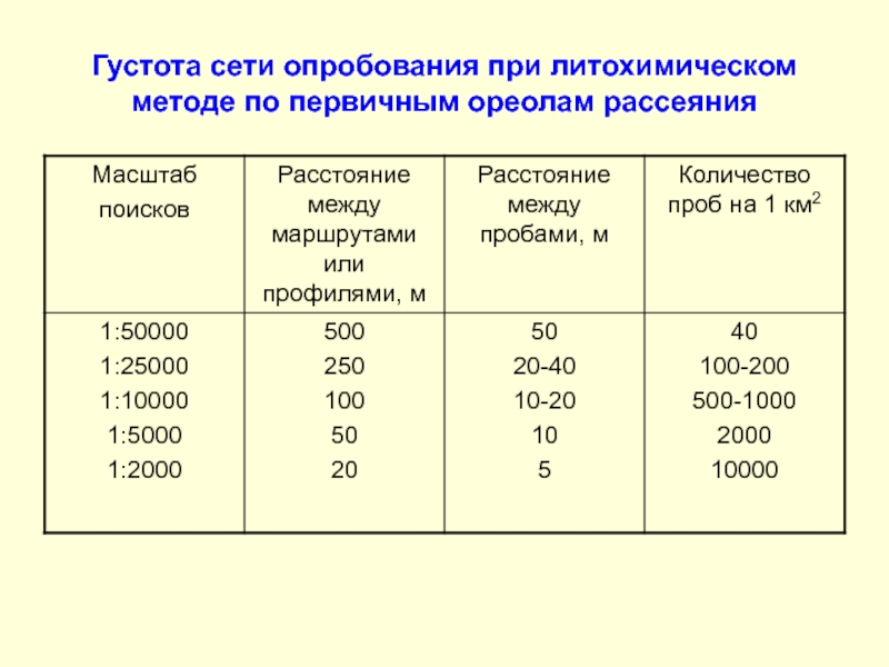 Плотность (густота) сети шлихового определяется масштабом поисковых