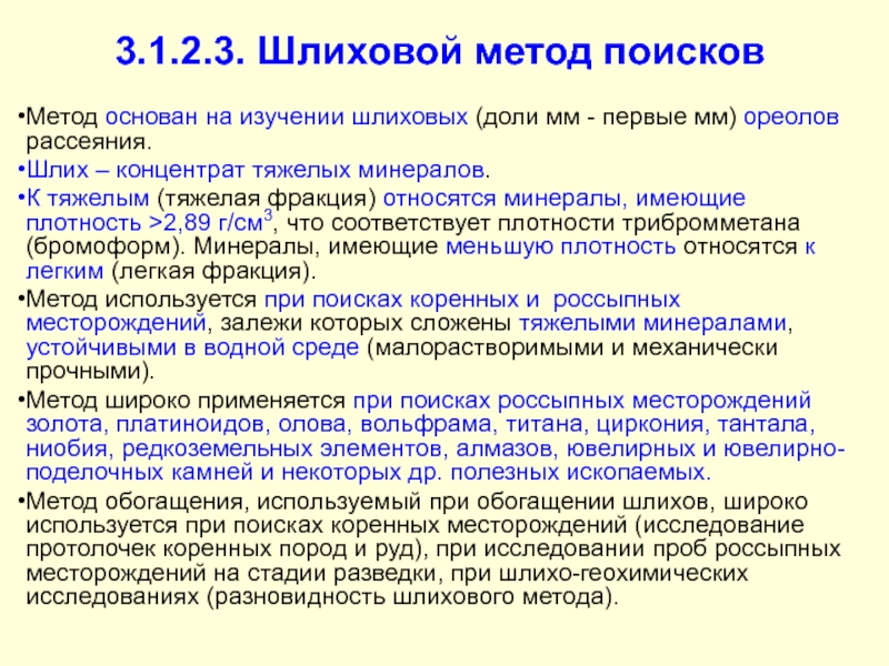Слайд 103.1.2.3. Шлиховой метод поисков