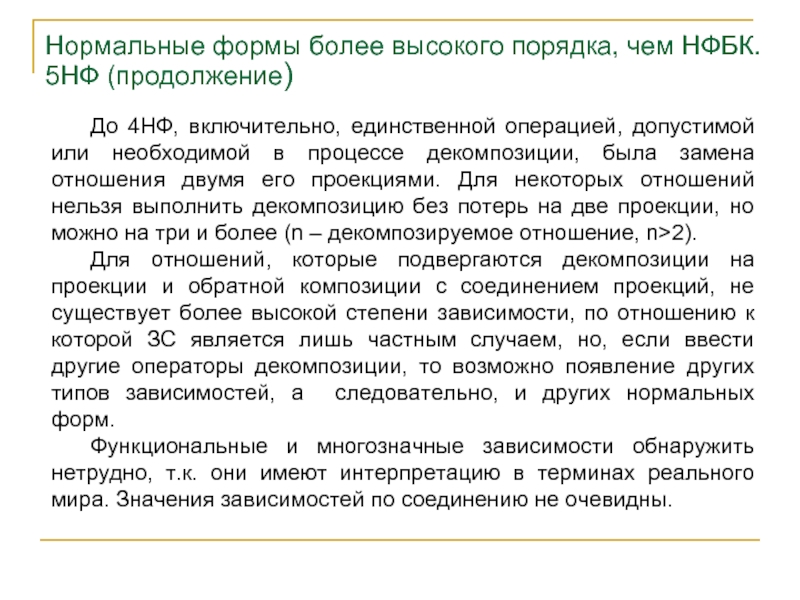 Нормальные формы более высокого порядка, чем НФБК. 5НФ (продолжение)