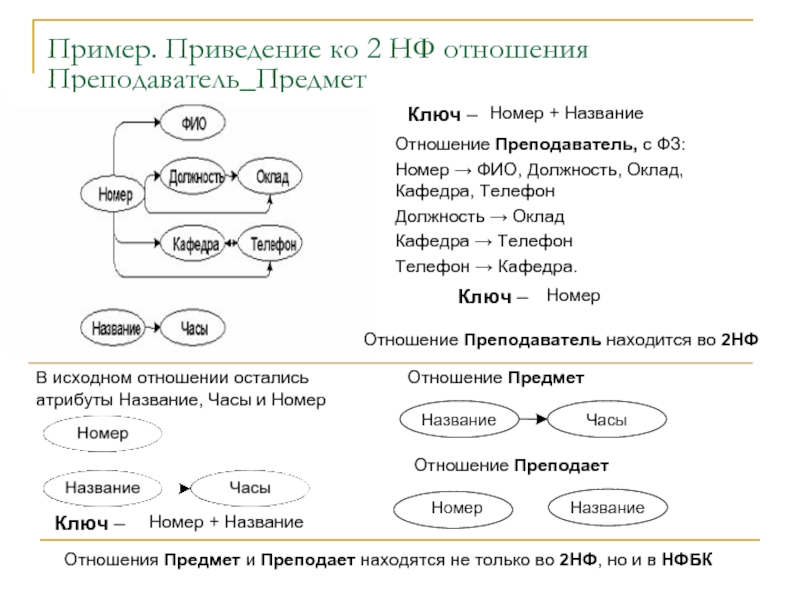 Отношения Предмет и Преподает находятся не только во 2НФ, но и в НФБК