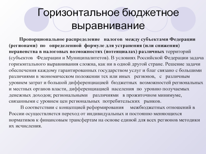 Выравнивание бюджетной обеспеченности субъектов Российской Федерации