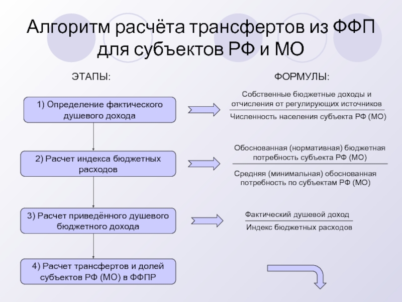 Алгоритм расчёта трансфертов из ФФП для субъектов РФ и МО