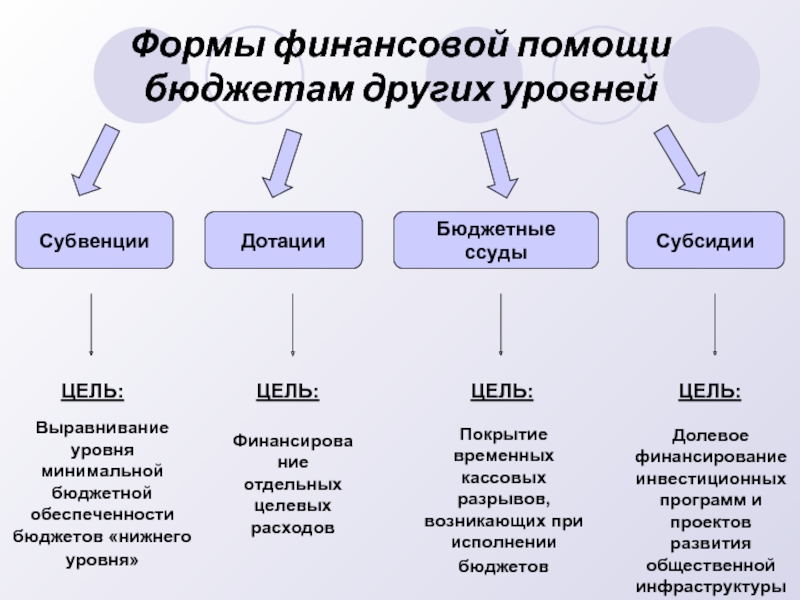 Формы финансовой помощи бюджетам других уровней