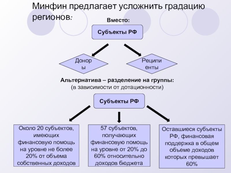 57 субъектов, получающих финансовую помощь на уровне от 20% до 60% относительно доходов бюджета