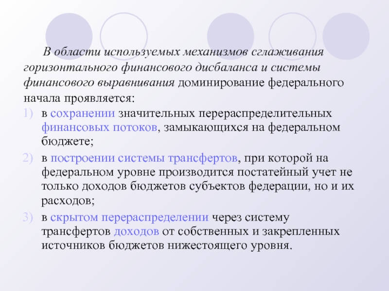в сохранении значительных перераспределительных финансовых потоков, замыкающихся на федеральном бюджете;
