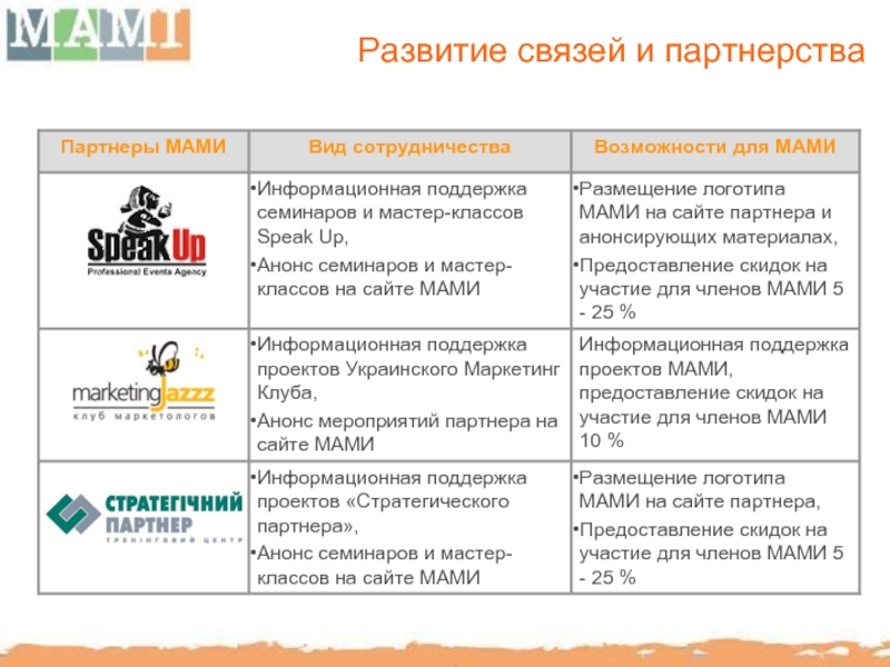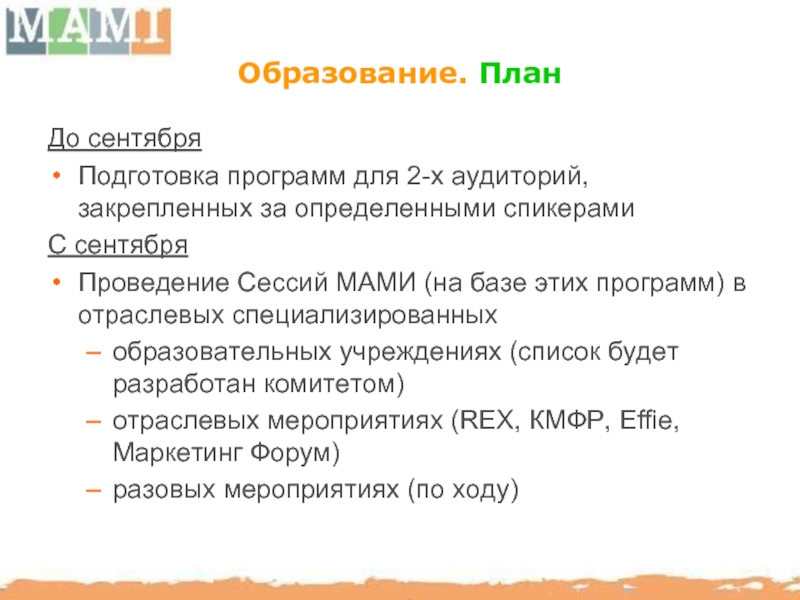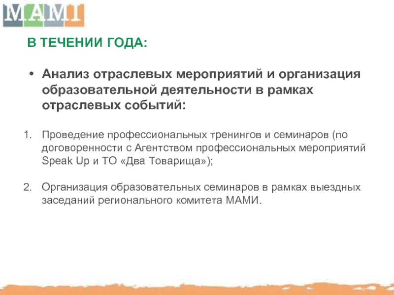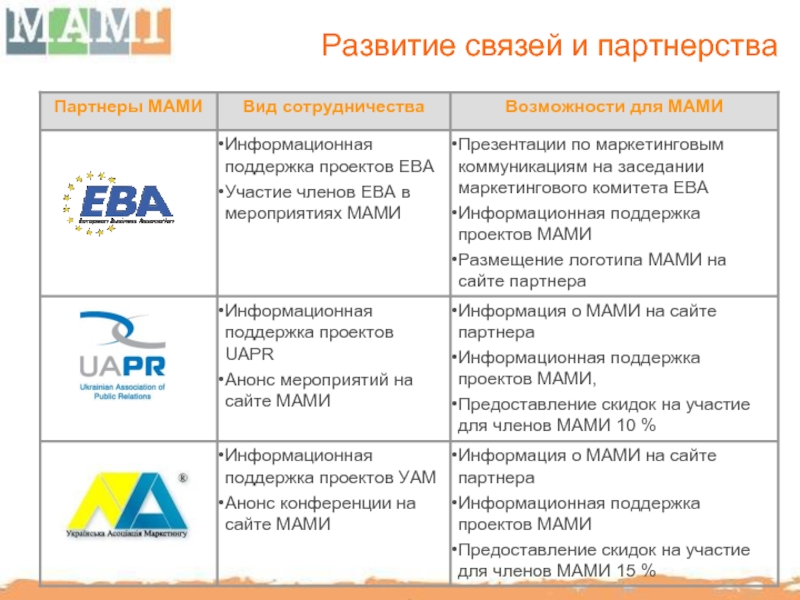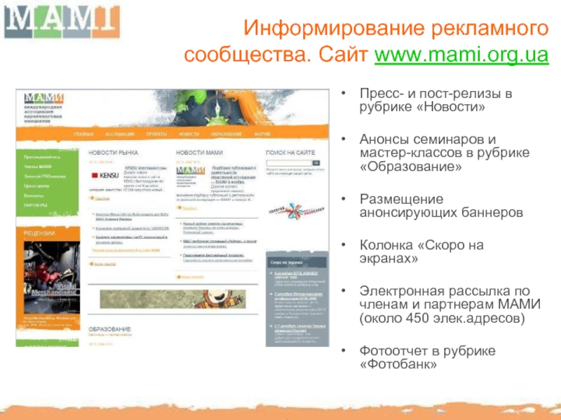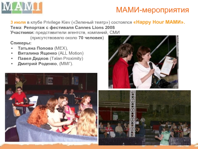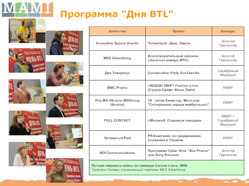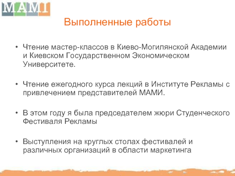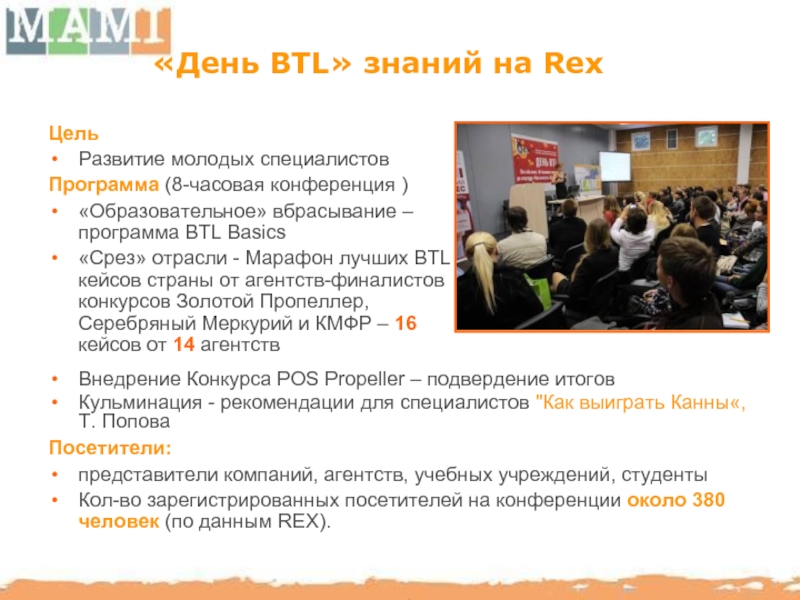 МАМИ способствует повышению профессионального уровня отечественного рынка BTL путем организации семинаров, мастер-классов с участием украинских и иностранных консультантов.