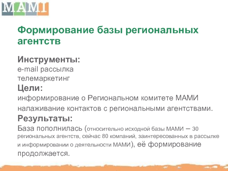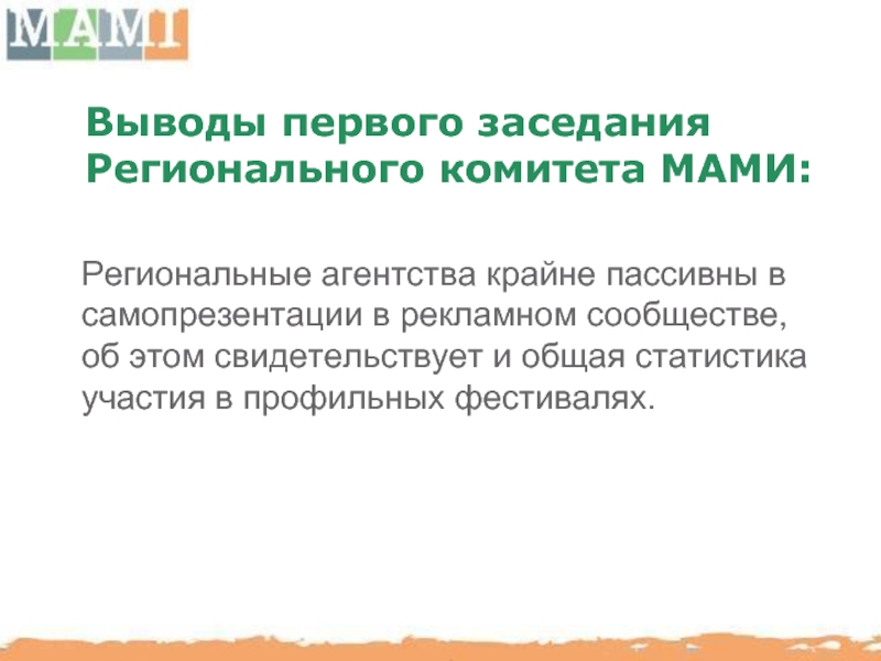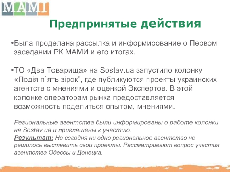 Слайд 82Результаты второго заседание регионального комитета МАМИ: