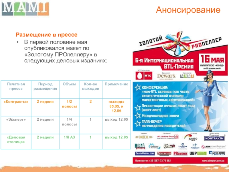 Профильные печатные СМИ: Marketing Media Review, PromoMix, Академия украинской прессы,