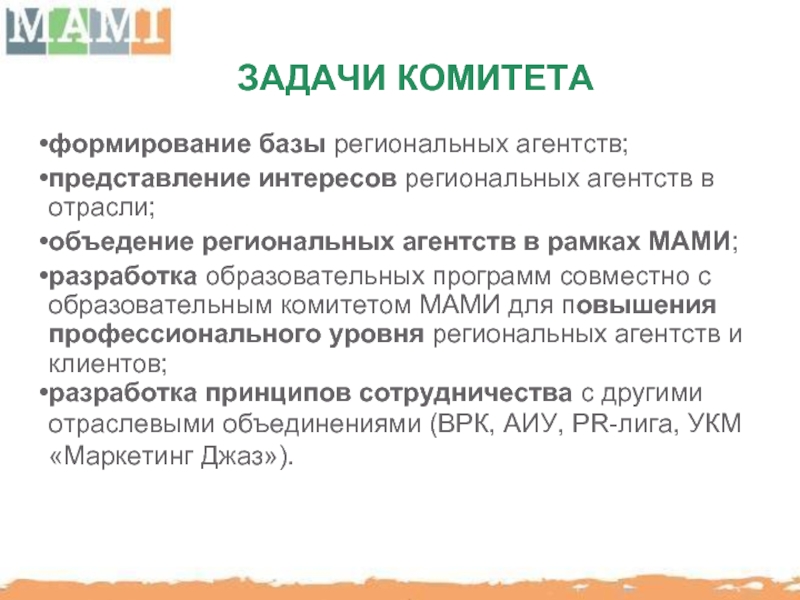 МАМИ помогает формировать “правила игры” всех участников рынка.