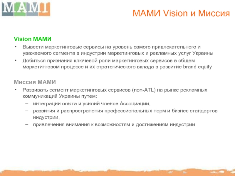 Слайд 6МАМИ Vision и Mиссия