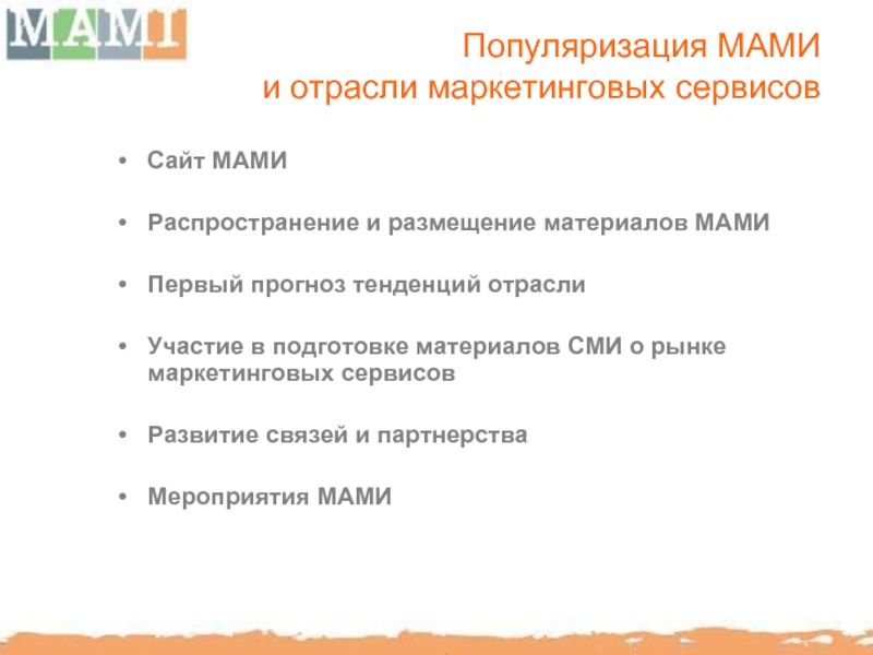 Слайд 10Популяризация МАМИ