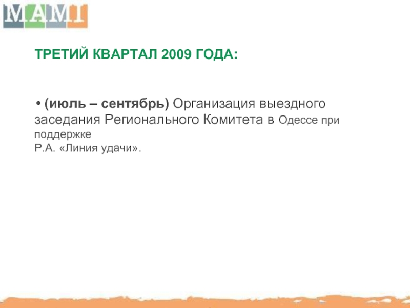(январь – март) Проведение заседания регионального комитета в Днепропетровске при поддержке и организационном участии «Promotion MIX»;