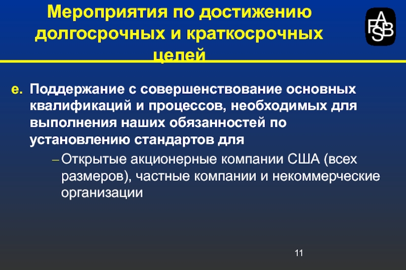 Мероприятия по достижению долгосрочных и краткосрочных целей