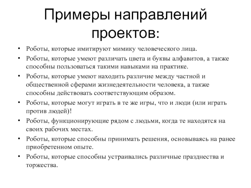 Слайд 31Примеры направлений проектов: