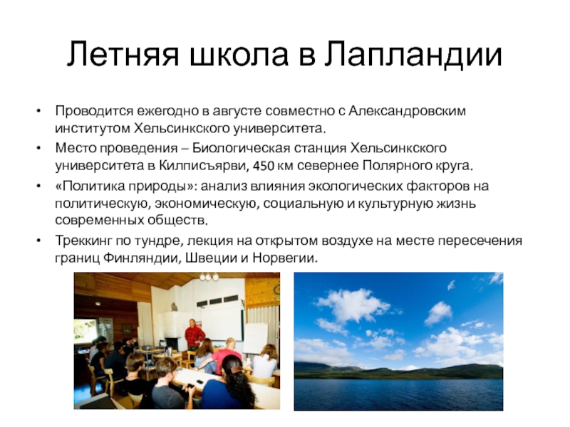 Слайд 4Летняя школа в Лапландии