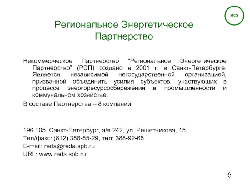Некоммерческое Партнерство “Региональное Энергетическое Партнерство” (РЭП) создано в 2001