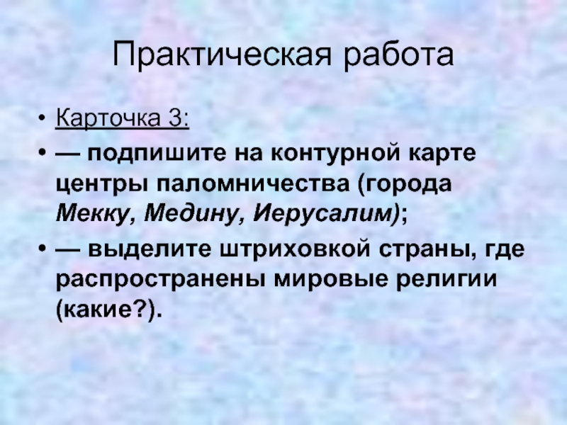 — выделите штриховкой страны, где распространены мировые религии (какие?).