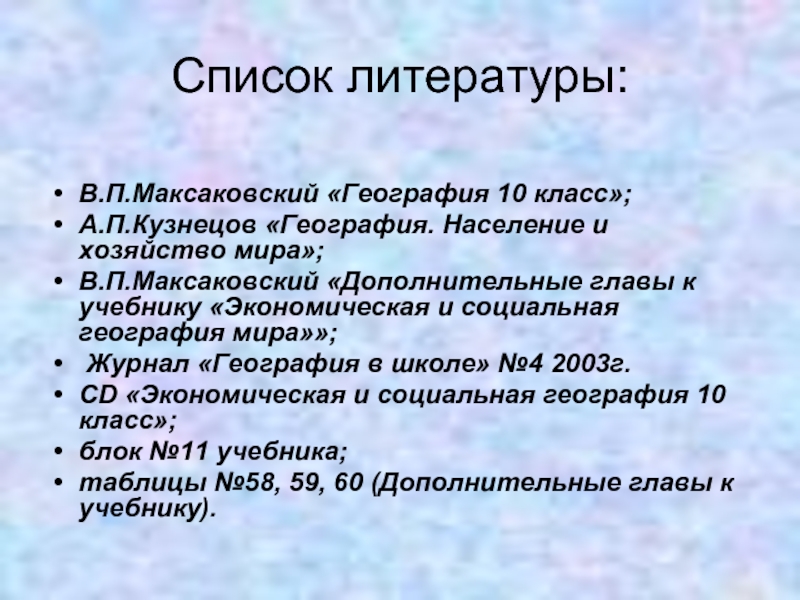 «Дополнительные главы к учебнику «Экономическая и социальная география мира»»;