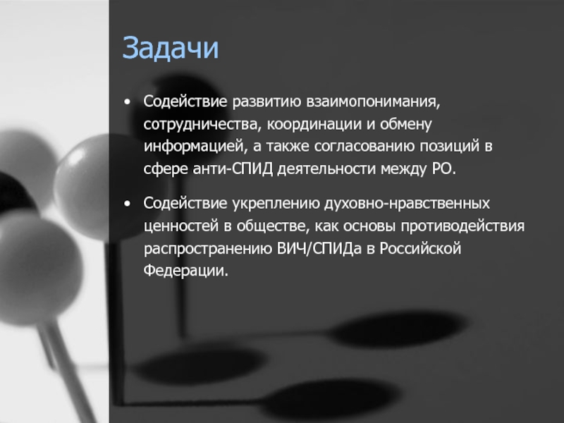 Содействие укреплению духовно-нравственных ценностей в обществе, как основы противодействия распространению ВИЧ/СПИДа в Российской Федерации.