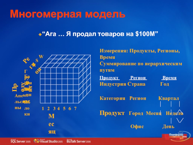 Измерения: Продукты, Регионы, Время