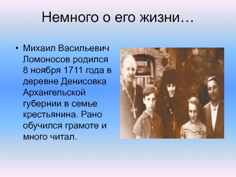Михаил Васильевич Ломоносов родился 8 ноября 1711 года
