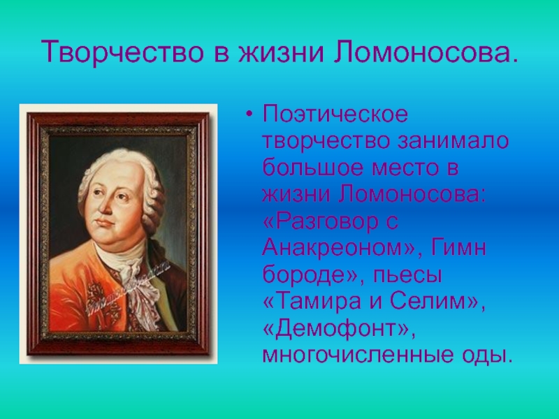 Поэтическое творчество занимало большое место в жизни Ломоносова: