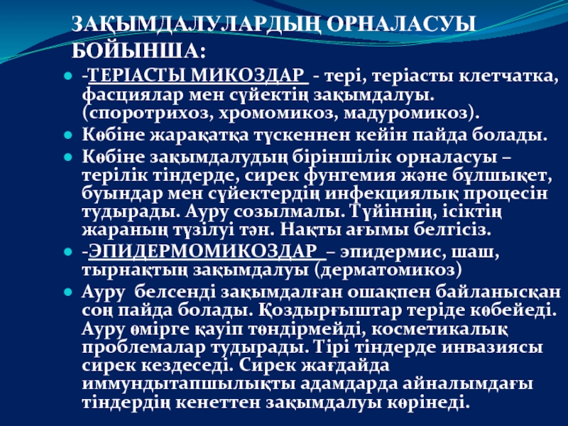 -ТЕРІАСТЫ МИКОЗДАР - тері, теріасты клетчатка, фасциялар мен сүйектің
