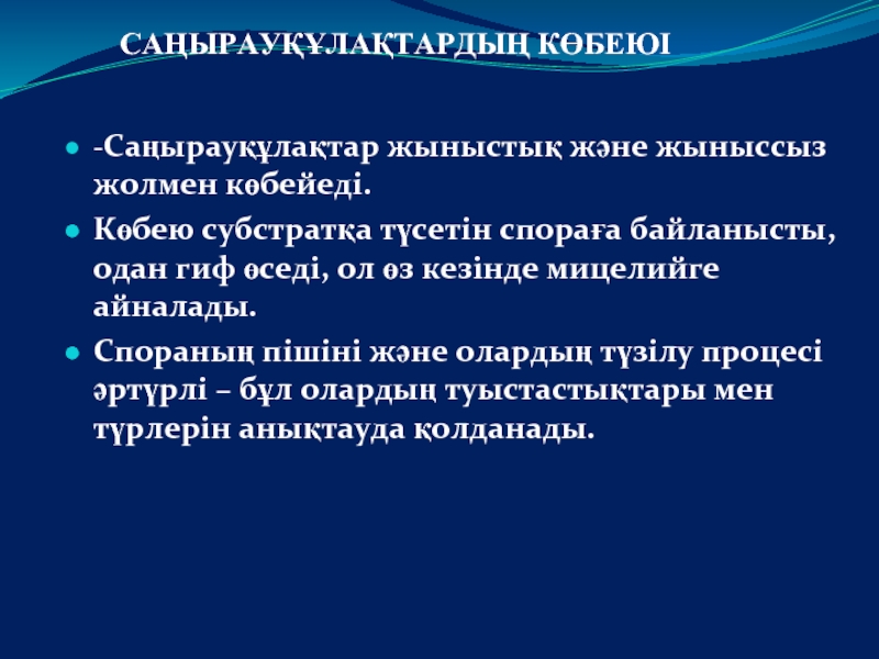 Слайд 13САҢЫРАУҚҰЛАҚТАРДЫҢ КӨБЕЮІ