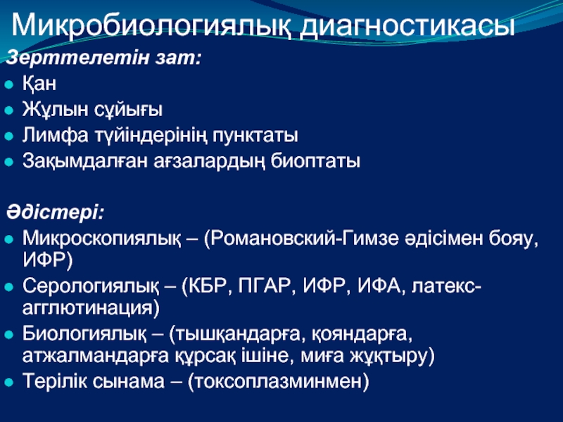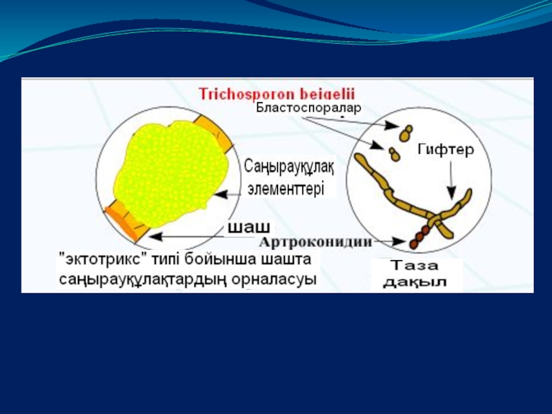 Слайд 1Микоздардың мен протозойлы инфекцияларды микробиологиялық диагностикасының жалпы принциптері. Этиологиялық диагноз қою