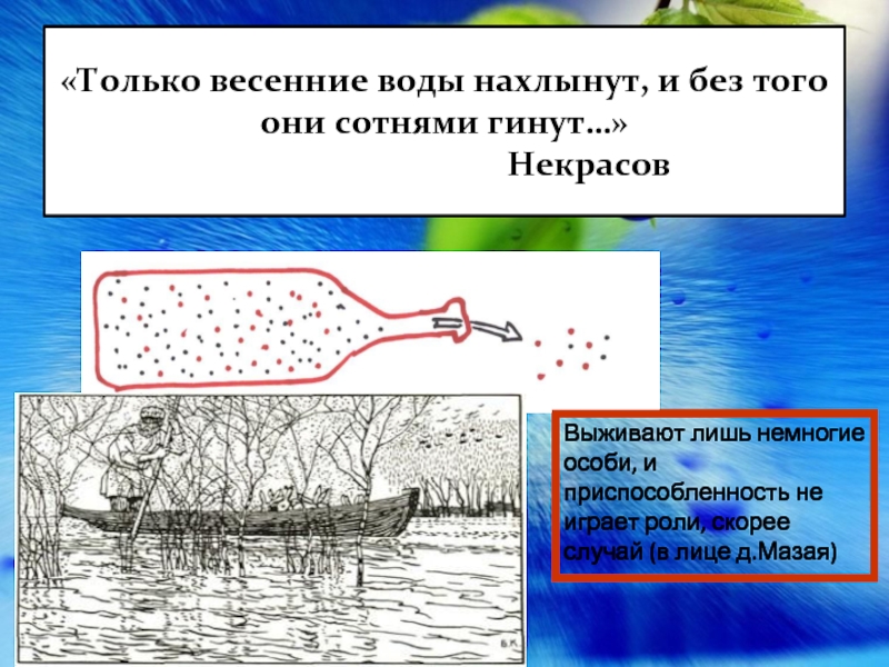 Выживают лишь немногие особи, и приспособленность не играет роли, скорее случай (в лице д.Мазая)