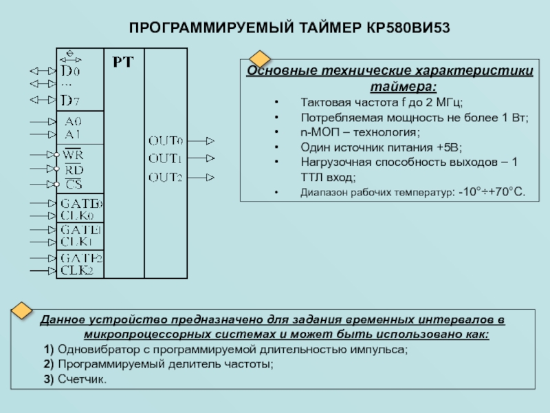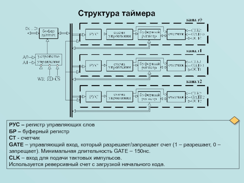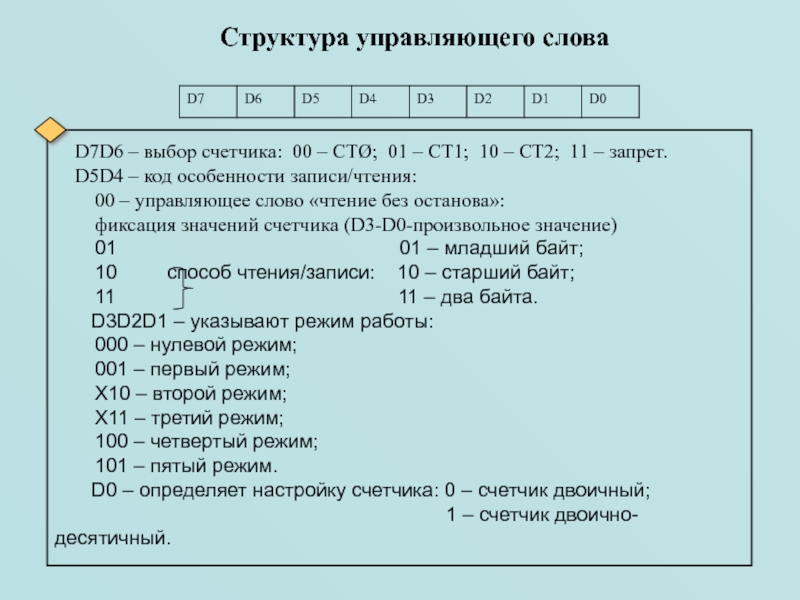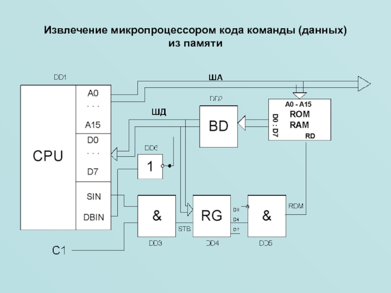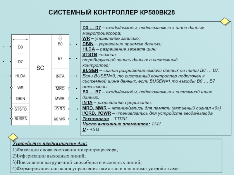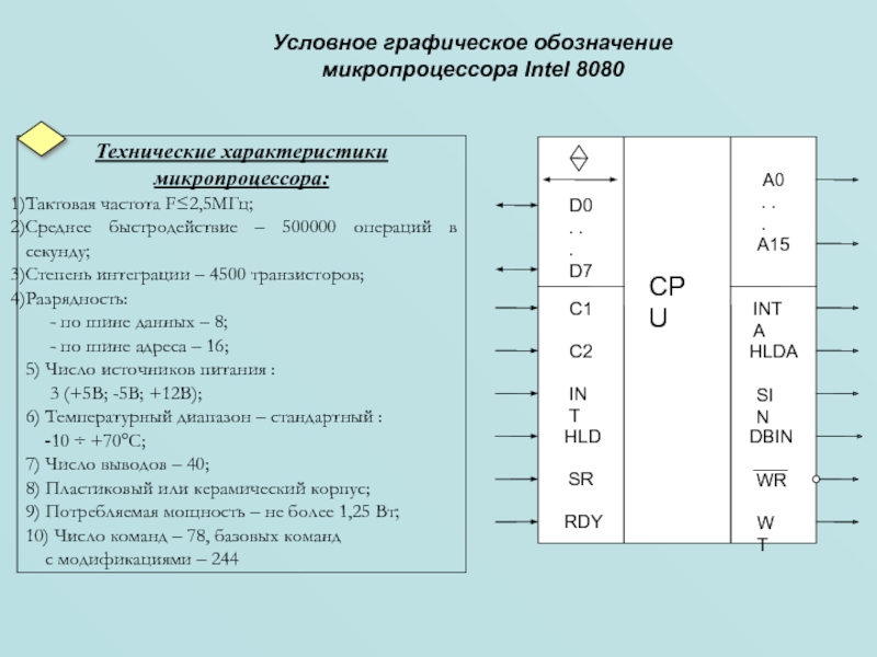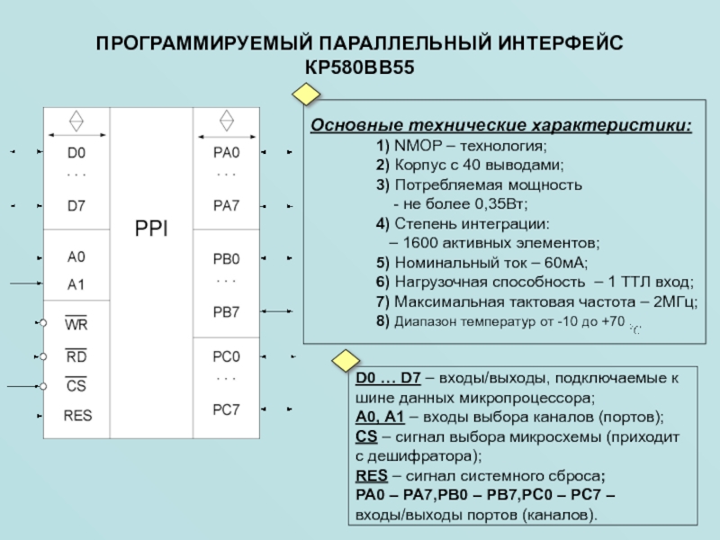 D0 … D7 – входы/выходы, подключаемые к шине данных микропроцессора;