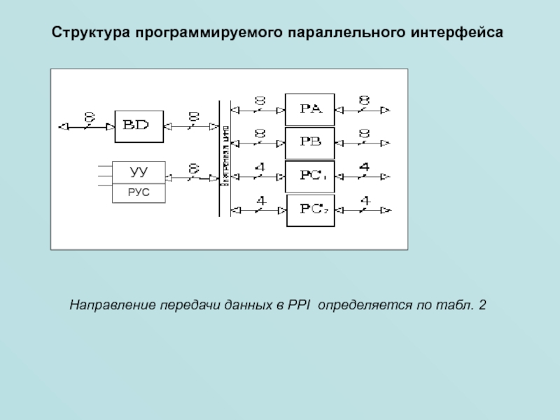 PA0 – PA7,PB0 – PB7,PC0 – PC7 – входы/выходы портов (каналов).