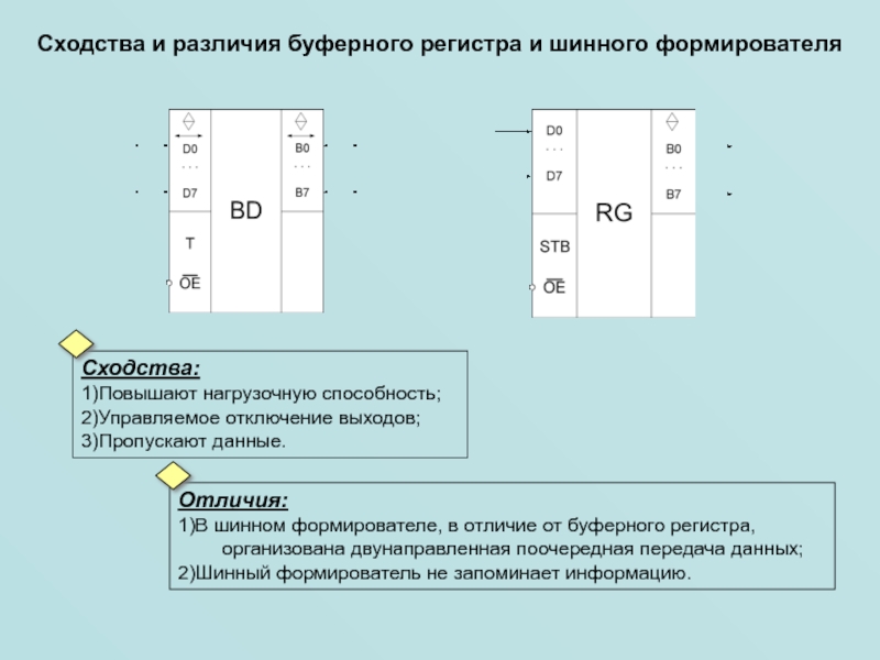 1)В шинном формирователе, в отличие от буферного регистра, организована двунаправленная поочередная передача данных;