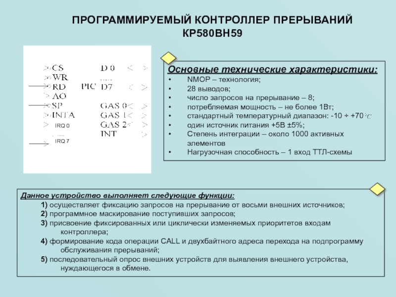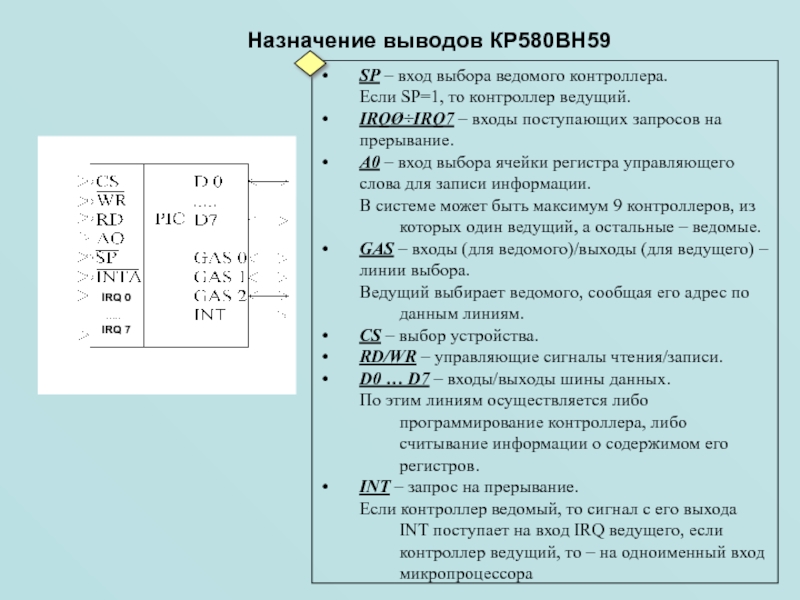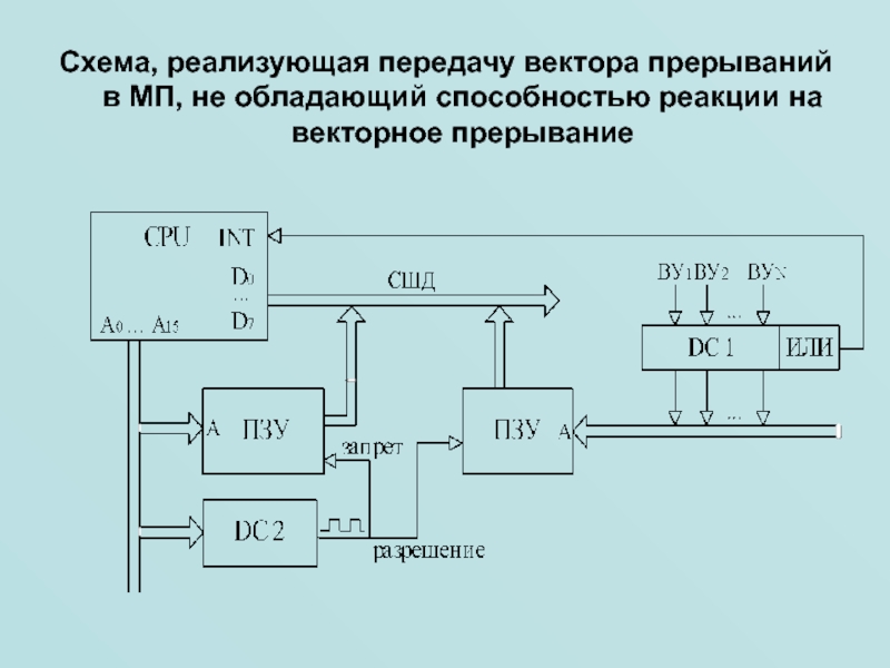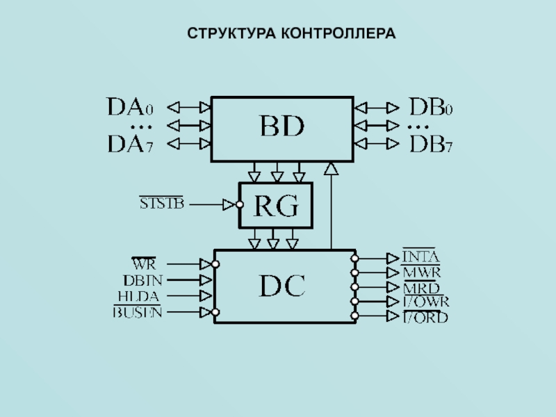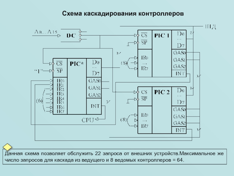 Для программиста контроллер прерываний схематично представляет собой два входных/выходных порта (две ячейки памяти, отличающихся адресами по линии А0):