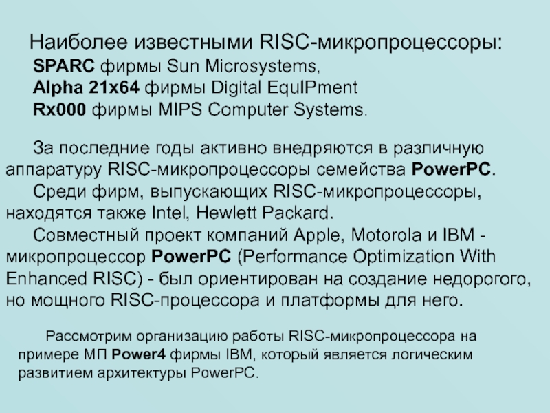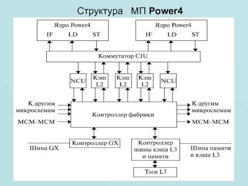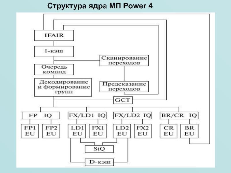 Рассмотрим организацию работы RISC-микропроцессора на примере МП Power4 фирмы IBM, который является логическим развитием архитектуры PowerPC.