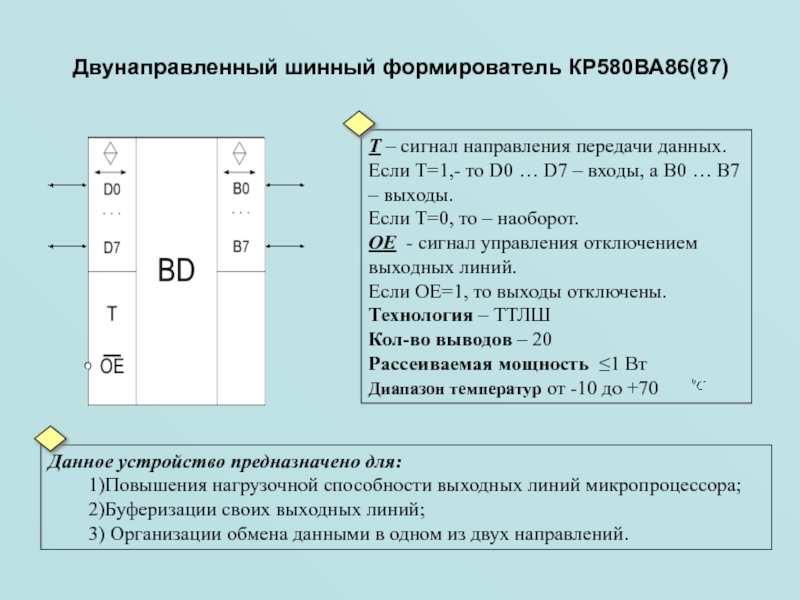 Если Т=1,- то D0 … D7 – входы, а В0 … В7 – выходы.