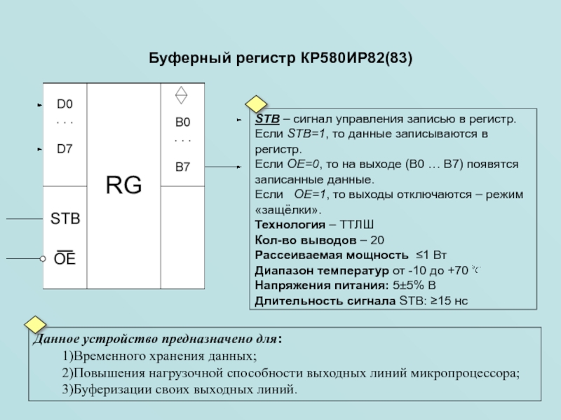 Если ОЕ=0, то на выходе (В0 … В7) появятся записанные данные.
