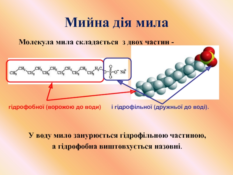 Молекула мила складається з двох частин -