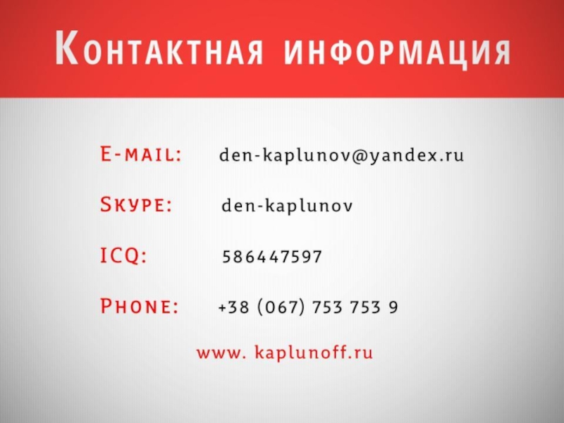 Если не удалось найти и скачать презентацию, Вы можете заказать его на нашем сайте. Мы постараемся найти нужный Вам материал и отправим по электронной почте. Не стесняйтесь обращаться к нам, если у вас возникли вопросы или пожелания: