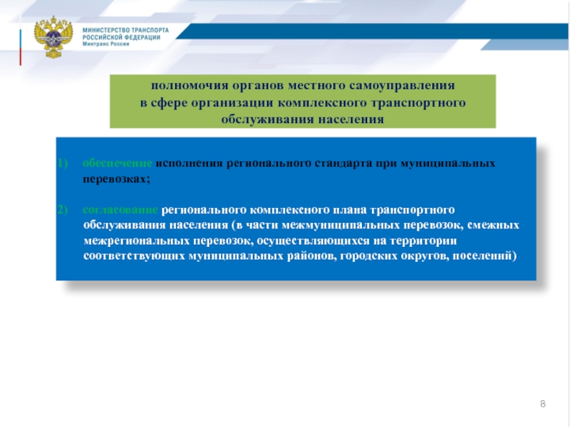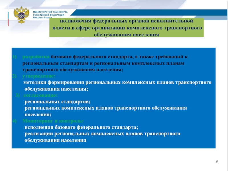 полномочия федеральных органов исполнительной власти в сфере организации комплексного транспортного обслуживания населения