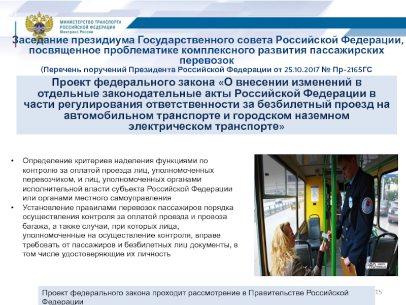 Проект федерального закона «О внесении изменений в отдельные законодательные акты Российской Федерации в части регулирования ответственности за безбилетный проезд на автомобильном транспорте и городском наземном электрическом транспорте»