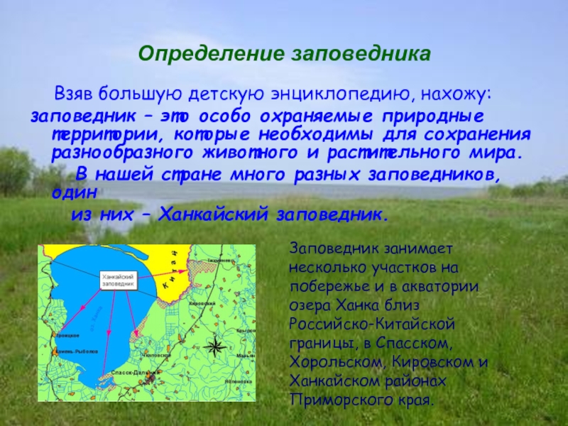 Заповедник занимает несколько участков на побережье и в акватории озера Ханка близ Российско-Китайской границы, в Спасском, Хорольском, Кировском и Ханкайском районах Приморского края.